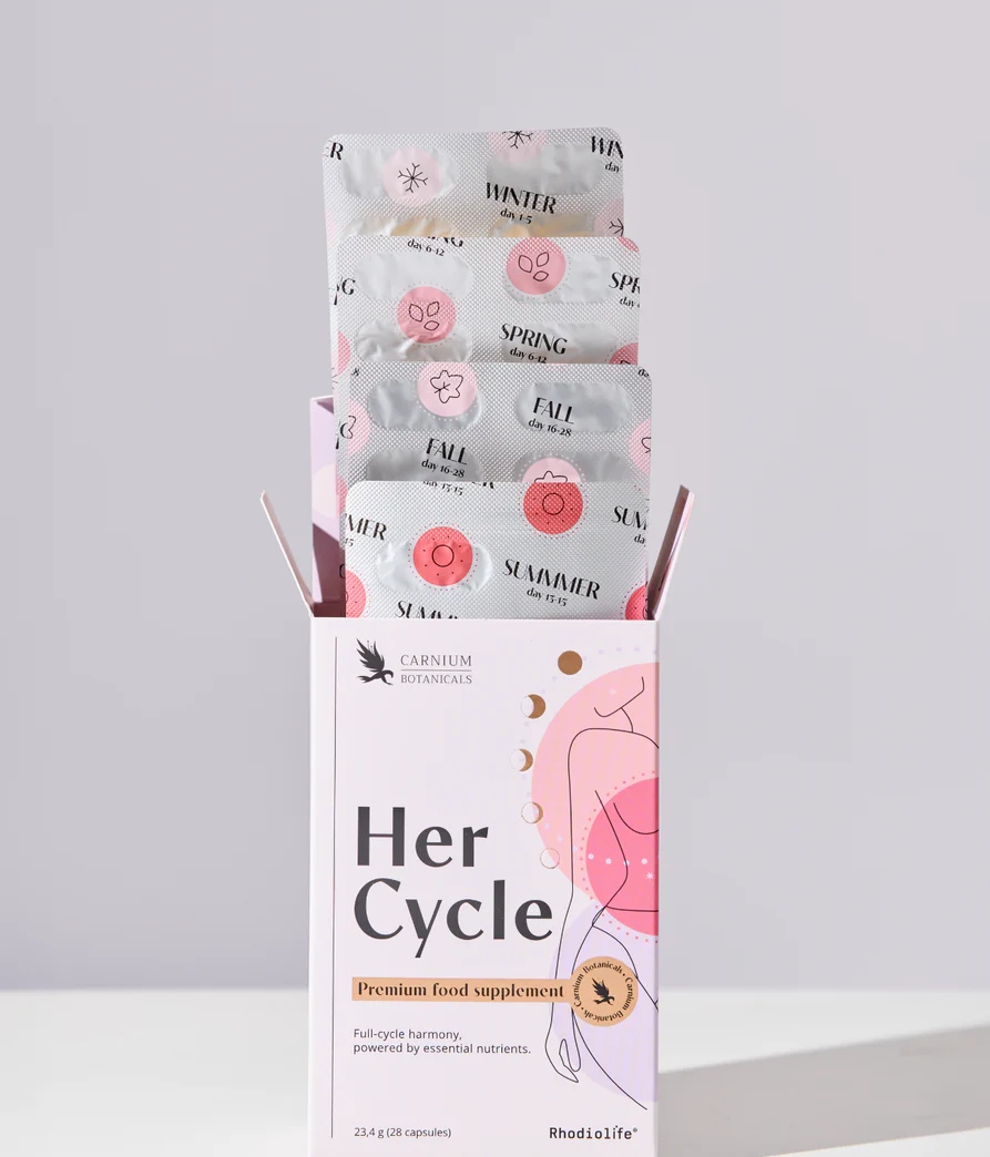 Her Cycle to innowacyjny suplement diety, stworzony specjalnie z myślą o wsparciu kobiet we wszystkich czterech fazach cyklu menstruacyjnego.