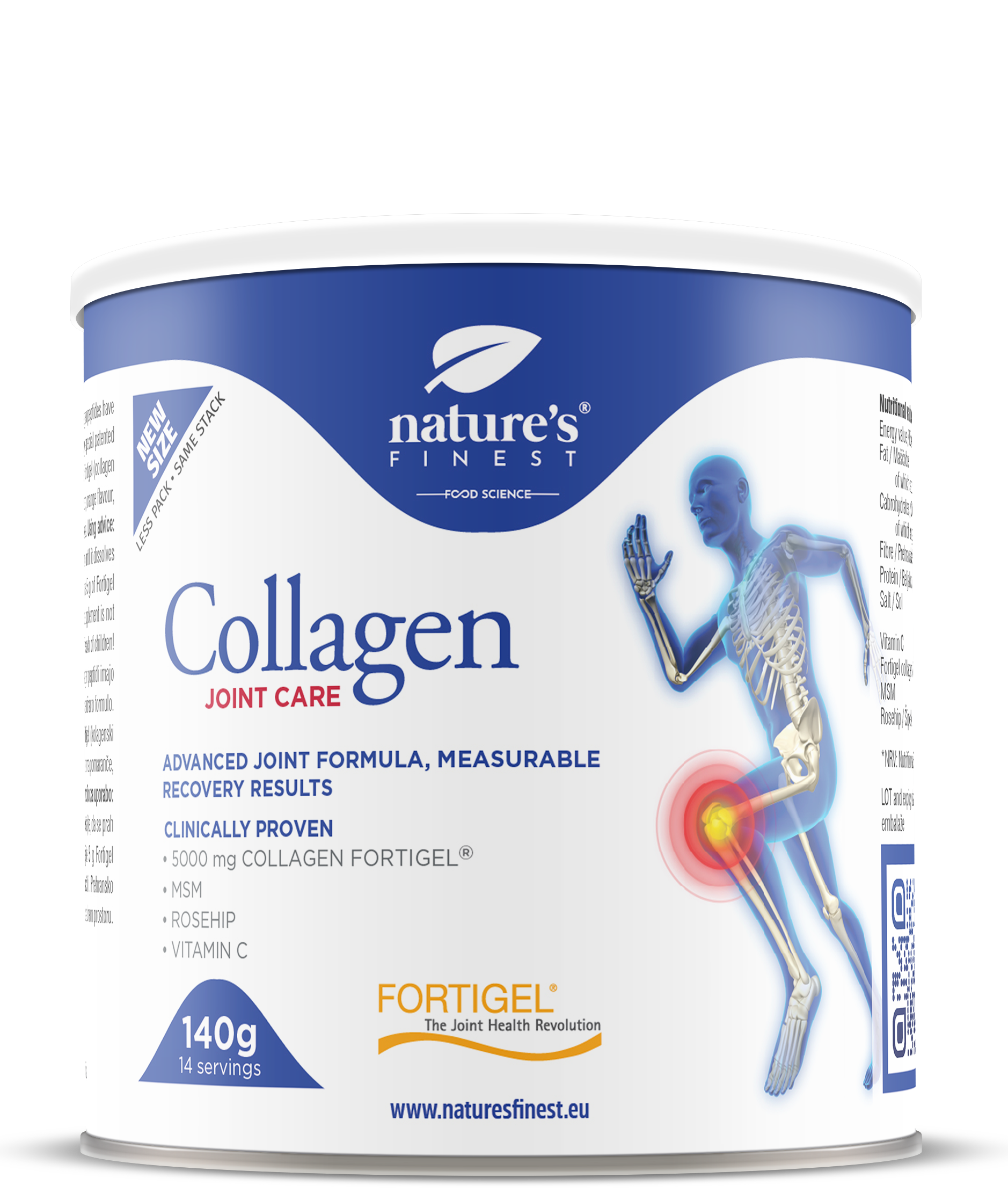 Formuła Collagen JointCare z opatentowaną formułą peptydów kolagenowych Fortigel®, MSM zapewnia ruchomość stawów. Dodatek dzikiej róży, bogatej w witaminę C, odgrywa ważną rolę w tworzeniu kolagenu, który jest niezbędny do prawidłowego funkcjonowania tkanki chrzęstnej.