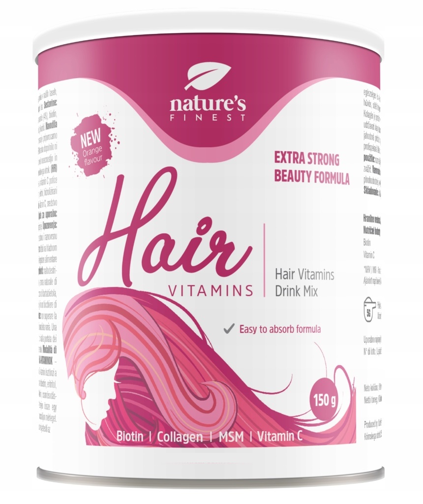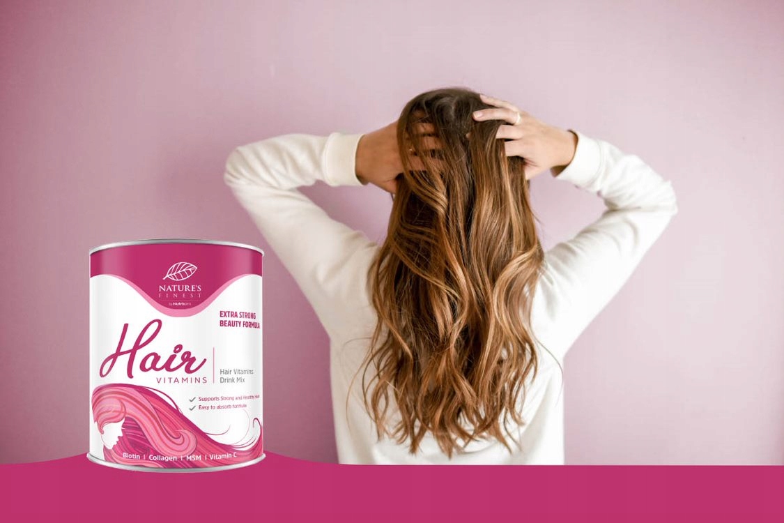 Witaminy na włosy do picia z biotyną, kolagenem, organiczną siarką MSM i witaminą C na mocne włosy i piękne paznokcie.